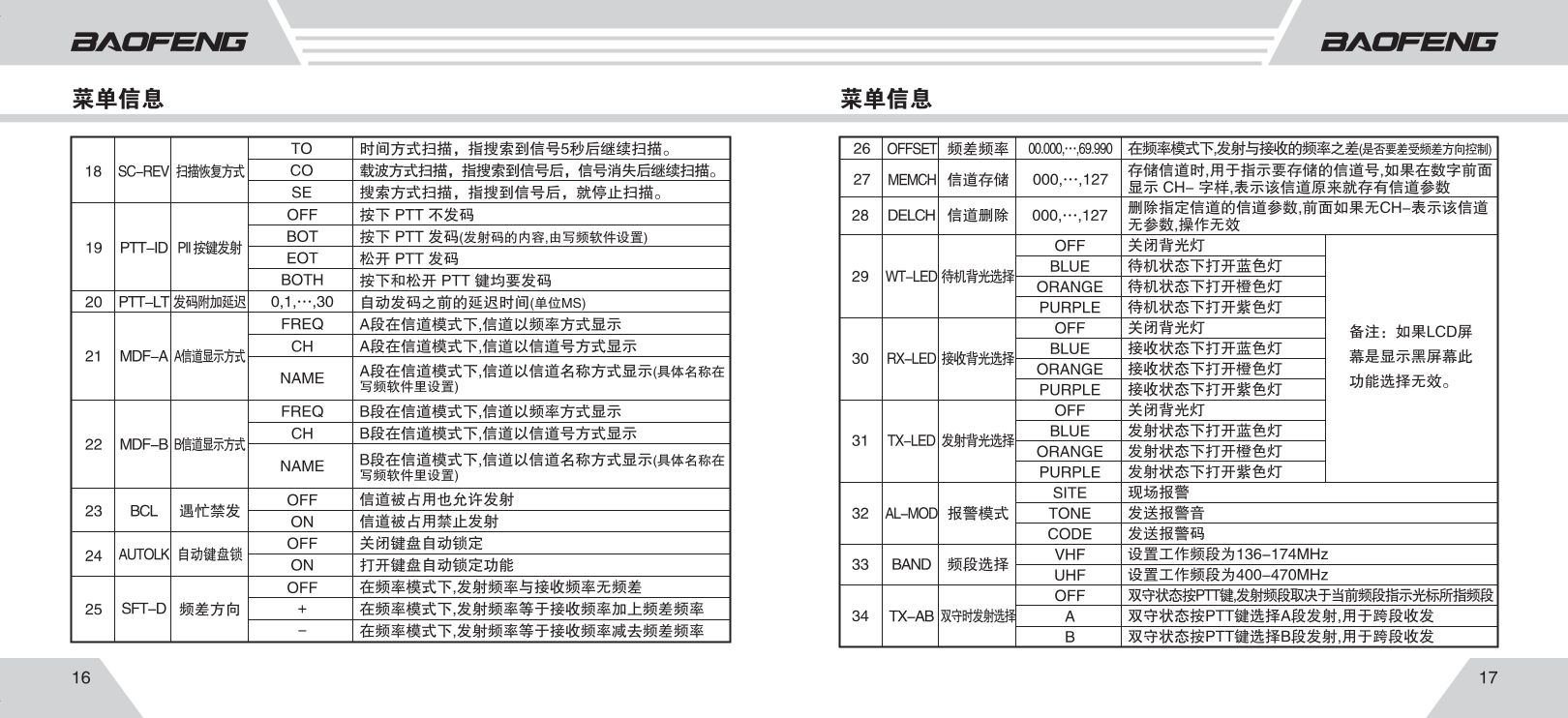 BAND:U/V频段切换(U段 400-470MHz / V段 136-174MHz)