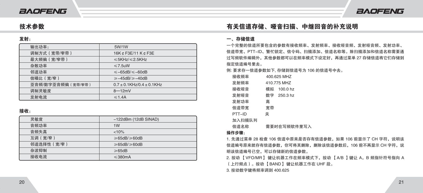 免执照机:必须使用预置的409MHz频段(中国20个频道),不可改装。
