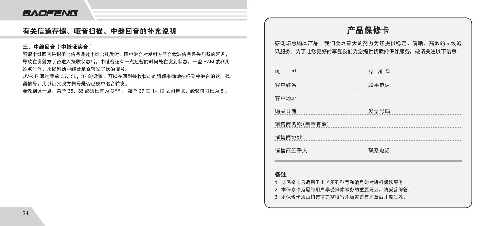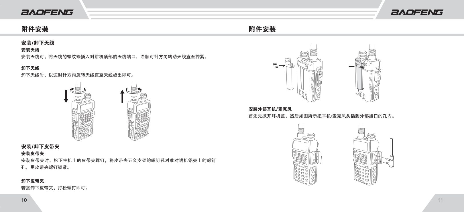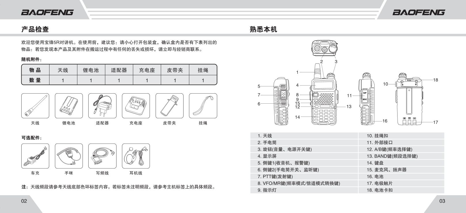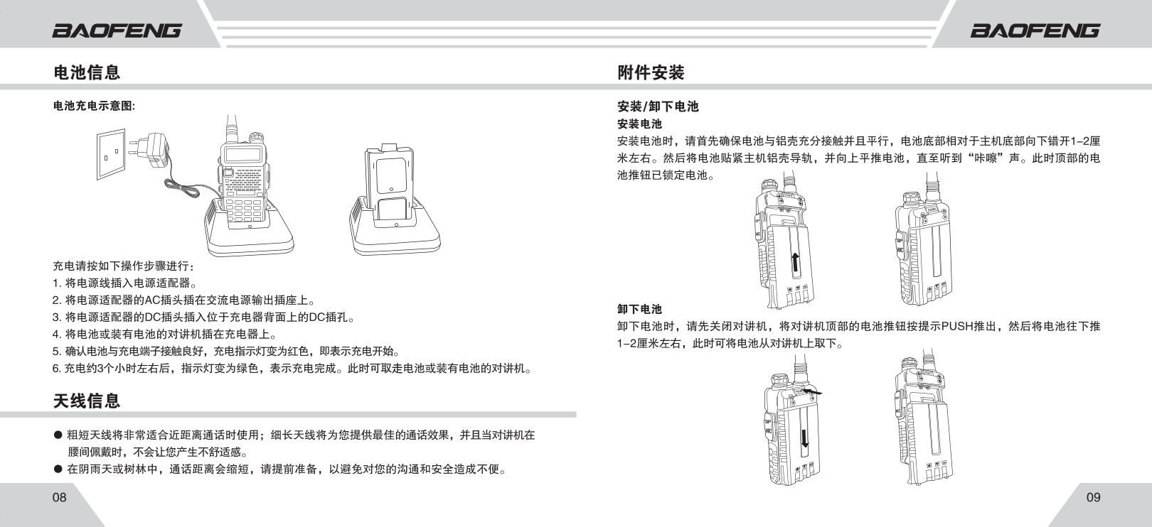 务必先安装天线再开机,否则按发射键(PTT)可能烧毁功放模块。